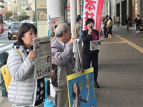 JUGEMテーマ:共産党(日本共産党) 安倍首相の「桜を見る会」をめぐる疑惑の徹底究明を訴える日本共産党の林県委員長ら(11月17日、松山市) 「安倍首相の『桜を見る会』をめぐる疑惑の徹底究明を」と11月17日、日本共産党県委員会と中予地区委員会は松山市の伊予鉄市駅前で街頭宣伝。林紀子県委員長、植木正勝中予地区委員長らが安倍首相の国政私物化を許すなと訴えました。 林県委員長は「『桜を見る会』をめぐって安倍首相自身が関わっている疑惑が明らかになった。『しんぶん赤旗』や日本...