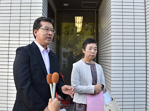 JUGEMテーマ:共産党(日本共産党) 報道陣の取材に応える田中、武井両県議(11日、松山市) 県警による誤認逮捕問題内部調査の県議会への報告などを受けて11日、日本共産党の田中克彦県議とネットワーク市民の窓の武井多佳子県議は県警本部を訪ね、篠原英樹本部長に、自白強要の事実を認め、被害者本人に謝罪することなどを申し入れ、文書での回答を求めました。県警広報県民課の武智吉浩課長が応対しましたが、報道陣の取材は認めませんでした。 申し入れでは、県警の県議会スポーツ文教警察...