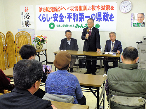JUGEMテーマ:共産党(日本共産党) 「私たちの闘いは、これからも不断に続く」と決意を述べる和田宰氏と、みんなの会の川原代表委員代表、今井事務局長(18日、松山市) 「改憲、消費税増税、伊方原発3号機再稼働など国の悪政をそのまま持ち込み、ダム建設や分水事業などの無駄遣いを続けながら県民サービスを切り捨てる中村県政の継続か、国の悪政にきっぱりものを言う和田県政の実現で、県民の命と安全、くらし、平和を守る、県民の声が届く県政へ転換するかどうか」が問われた知事選は18日投票...