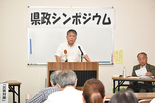 JUGEMテーマ:共産党(日本共産党) 県政シンポで知事選へ立候補する決意を表明する和田つかさ氏(9月22日、松山市) 明るい愛媛をつくるみんなの会は、9月22日に開いた県政シンポジウムで、知事選(11月1日告示、18日投票)に、みんなの会の候補者として、同会代表委員で新人の和田つかさ氏(66)を擁立すると発表しました。和田氏は、2003年、07年知事選に同会から立候補、今回が3度目の挑戦です。 和田氏は、参加者の大きな拍手の中、演壇に立ち、「本日開催された明るい愛媛をつ...