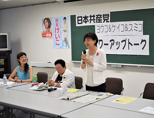 JUGEMテーマ:共産党(日本共産党) パワーアップトークで訴える白川さんと松田市議、秋本県議予定候補ら(7月20日、今治市) 日本共産党今治市委員会と同後援会は7月20日、今治市の今治地域地場産業振興センターで「日本共産党 ヨウコ&ケイコ&スミコパワーアップトーク」と題したつどいを開き、20人が参加。白川容子党四国ブロック国政対策委員長と秋本けいこ県議予定候補、松田澄子市議がそろって訴えました。 白川さんは冒頭、西日本豪雨災害で、各地な声や避難者の思いを国政に届けた...