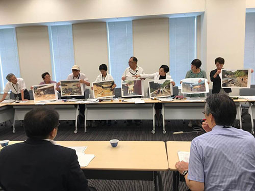 JUGEMテーマ:共産党(日本共産党) 豪雨被害の実態を写真パネルで訴える林県委員長と党地方議員団ら(7月26日、参院議員会館) 「未曾有の豪雨被災者の現場の声を政府に」と日本共産党県委員会は7月26日、仁比聡平参院議員の案内で政府交渉を行い、土砂・廃棄物の撤去や被災者支援、ミカン農家の支援など被災者第一の迅速・柔軟な支援強化を要請しました。環境省は、全壊家屋や土砂・災害廃棄物撤去は全額公費負担すると説明。林紀子委員長、石本憲一書記長、小崎愛子・杉村千栄両松山市議、松田...