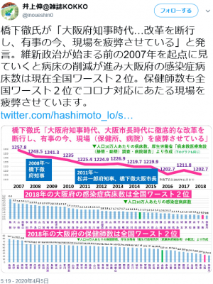 JUGEMテーマ:大阪 JUGEMテーマ:大阪 JUGEMテーマ:大阪維新の会 今日は「西村経済再生担当大臣と吉村大阪知事の不毛な言い争い」と題して論説します。 スポニチの記事をご紹介します。 『スポーツニッポン 2020/05/06 20:06 西村経済再生担当相 吉村知事の非難に不快感「仕組みを勘違いしている」 西村康稔経済再生担当相は6日の記者会見で、新型コロナウイルス特措法に基づく休業要請などの措置の解除基準を国が示さないと吉村洋文大阪府知事が非難したことに対し「...