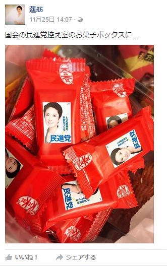 JUGEMテーマ:民進党 出典 蓮舫Facebook うちわ問題では、さんざん言っていたけど、政党のチョコはいいのですね。これは、有権者に配ったりしないのだろうか。(*_*)法律って難しい。@ozuemura @ikaryakuchan — のーちゃん (@toukibigohon) 2016年11月27日 これは何だろうと調べた所、 キットカットのチョコラボであることがわかりました。 民進党は松島みどり議員の「うちわ」を公選...