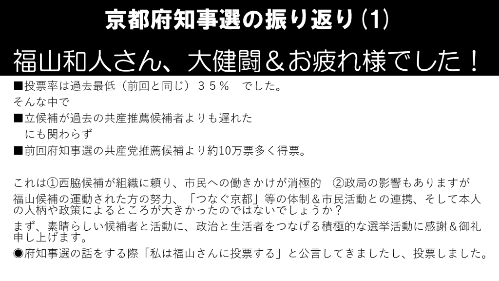 JUGEMテーマ:立憲民主党 ◉今回の知事選で立民に失望した人、読んでほしい #福山和人 #つなぐ京都 #にしわき隆俊 #西脇隆俊 #京都府知事 #立憲カフェ #立憲パートナーズ #ゆっくり理想を忘れずに #今の常識は無数の涙の上に #今日の政局でなく5年後の姿を