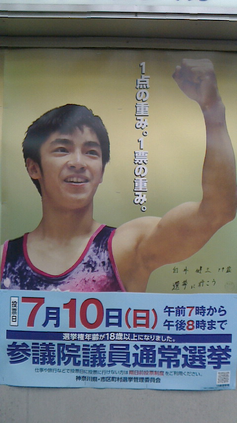 JUGEMテーマ:選挙 参院選の開票が始まりました!我らが三原じゅん子が開票開始とともに当選確実です!神奈川での与党(自民・公明)3議席も目に見えてきました。大阪は何と維新の会が2議席獲得しました!自民過半数と改憲(自民+公明+おおさか維新+日本のこころ)3分の2もできそうです。野党(民進・共産・社民・生活)共闘は岩手と山形と沖縄以外は当選出来なそうです。 池上さんの選挙特番で公明党最大の支持団体創価学会や自民党支持の神社に取材しています。 というわけで白井健三の神奈...