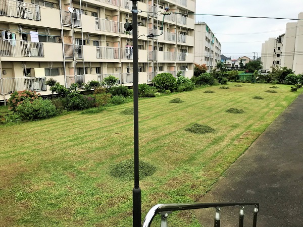 37号棟のお庭… 素晴らしく見事に芝がカッティングされております… まるでゴルフ場… 一定の間隔でこんもりと刈られた草が積んであり、なんとも言えぬ風景となっております… これらは全て住民の方のボランティアのなせる技です。 しかし… そのボランティアの方々も… 高齢化が進み… 毎年、毎年、 「今年はもう最後か、いや、来年か…」とギリギリのところに来ております… 今、活躍中のスー...