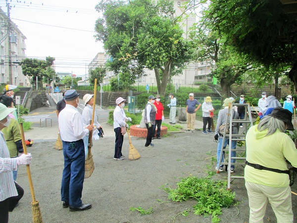 上飯田団地連合自治会で児童公園の清掃を行いました。 昨晩は雷鳴とどろく豪雨でしたが、朝方からは雨も上がり、日程通りに公園清掃です。 草刈隊も出動。 下草を刈っていきます。 雨は上がったものの… 今度は暑い… みなさん、暑い、暑いって言いながら… ホント、偉いよね… 児童公園のシンボルでもある藤の木、結構、こんもりしてきたね〜。 脚立もってくれば良かったね〜。 40...