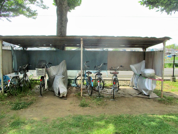 我らが第5自治会の駐輪場。 もう、いつ作られたか不明で、かなり傷んでます… 雨が降ると、足元がどろどろになるので、廃品のカーペットを活用して、下に敷いてるのだが… まくれまくって、ねじれまくってます…。 とりあえず、バイクや自転車を移動。 カーペットをビシッと敷き直しました。 再びズレてこないよう、カーペットの周辺を丸くぎで地面に固定。 駐輪場の裏は昨年、防草シートを設置し...