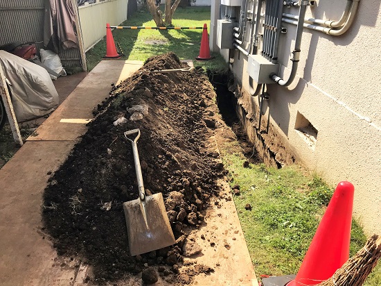 15棟横の空洞が見つかり、工事を行いました。 お庭をされる方が、15棟横の建物に隣接する地面に大きな穴が空いているのを発見。 公社に連絡し、宮野工務店さんが来て色々見てくださった結果、かなり広範囲に 地下に空洞があることがわかり、いったん地面を掘り返し、きちんと埋める工事を してくださいました。 なぜこんな空洞ができたのか… 雨水が流れ込んだのか… 明確にはわかりませんでした… きちんと埋め戻し、地面を固めてくださいました。 ...
