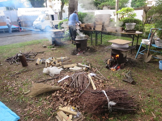 明日は社会福祉協議会主催の「上飯田団地福祉祭り」です。みなさんでテントを張ったり、舞台を作ったり。 着々と進められていきます。今日は天気もよく、絶好の作業日和。ちょっと暑かったですが…。 私は、餅係を仰せつかり、かまど炊きの準備から付き人として手伝いました。適度な穴を掘り、耐熱ブロックでかまどを作っていきます。 水準器で傾きもチェック。 空気の抜け具合とか、微妙な傾きが重要とのこと。 せいろやかまどを運びます。 先日、街路樹の剪定で、いい巻が出たので、回収に。 ちゃんと巻割りしててくれて、乾燥...