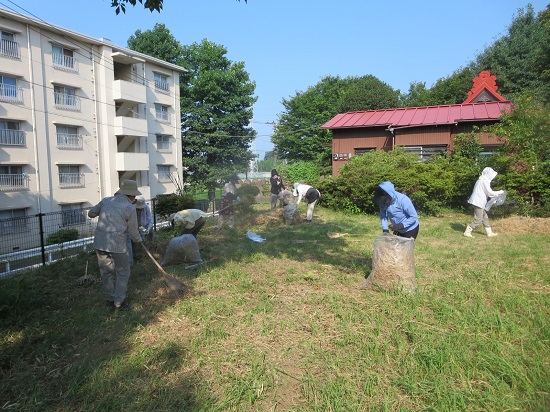 本日も、昨日に続き、上飯田団地連合自治会・緑化委員会による草刈が行われました。 今日も曇天で気温も25℃前後と過ごしやすく、草刈にはちょうどいい気候。 それでも、作業をすれば、そこそこ体にコタエます…。 緑化委員会の方々には、本当に頭の下がる思いでいっぱいです。 緑化委員会の方々はプロ並みに仕事が丁寧で早い! 草刈後もきれい… まるで、羊の毛を刈ったあとみたいにフカフカの草が… さらに今日は、昨日すでに済んでいる16号棟の刈った草を片付けました。 住民の皆様の多大なるご協力に心から感謝いたします。 ...