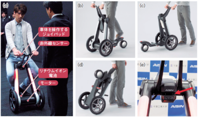 アイシン精機と千葉工業大学未来ロボット技術研究センター(fuRo)は2015年3月、電動小型一人乗りモビリティー「ILY-A(アイリーエー)」を開発した。特徴はさまざまな用途に使える「変形機能」に加えて、自動ブレーキなど高い安全機能を搭載したこと。5年以内の実用化を目指す。 「高齢者や障害者の行動支援だけではなく、若者にも利用してもらいたい」。開発に当たったfuRo所長で同大学常任理事の古田貴之氏は、ILY-Aを幅広い用途や世代に利用してもらいたいと考える。同機は座って移動するだけではなく、キックボードのよう...
