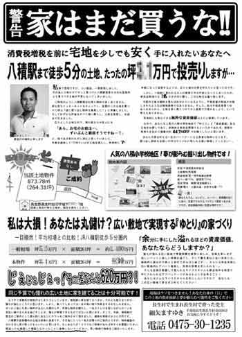 ”恥さらし大好き!” 細矢です。 今、思ったのですが、 今週の土曜日は台風が来ますね。 あなたは対策は取っているでしょうか。 山側にお住いの方や川沿いの方は 気をつけてくださいね。 さて私も考えてみました。 台風対策でやり忘れたことはないか? 何か重大な対策がやり忘れていないのか…? で、今気づきました。 実は今週の土曜日にチラシを撒く手配を していました。 どうしても売却したい264坪の 土地があるので、そのチラシを 手配してい...