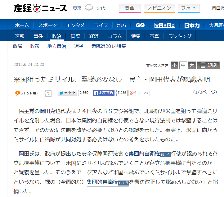 2015.8.13 民主党は、社民党を実質的に引き継いで左翼そのもの。最近の出来事を含め、まとめてみました。 1.岡田克也・民主党代表 良識ある日本国民は、この狂った発言に呆れ果てています。民主党支持者さえも眉をひそめており、民主党に大きなダメージを与えることでしょう。国政選挙において、自民党候補者は必ず活用すべき。 “友人”が攻撃されているのに、防御兵器を使わないとは、“人間のクズ”です。民主党代表の岡田は、卑劣漢です。 2、鳩山由紀夫元総理・元...