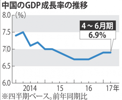 JUGEMテーマ:中国ニュース 今日は7/18に掲載された毎日新聞の記事「中国GDP6.9%増 金融リスク警戒 当局引き締め」について取り上げ、中国のGDPが常に7%前後になってしまう背景について述べます。 記事の概要は以下の通りです。 『毎日新聞2017年7月18日 23時46分 中国GDP6.9%増 金融リスク警戒 当局引き締め 【北京・赤間清広】中国経済が安定飛行に入っている。17日発表された今年4〜6月期の国内総生産(GDP)は、物価変動の影響を除いた実質で前年同期比6.9%増と1〜3...
