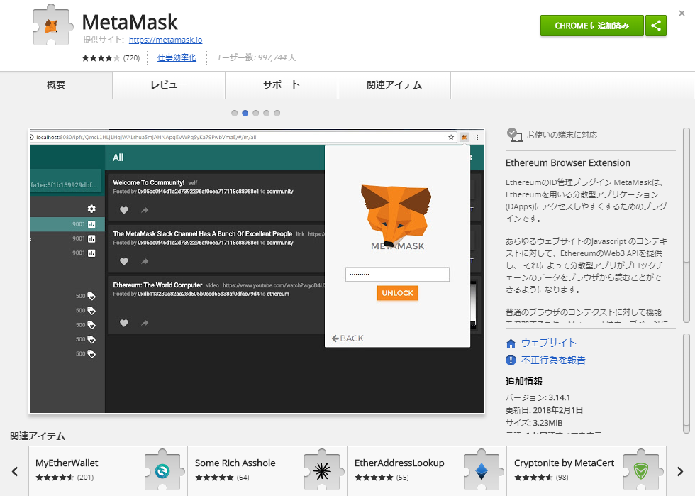 JUGEMテーマ:仮想通貨 えなこいんです、おはようございます。 ブロックチェーン技術を使ったゲームプレイをするには、 MetaMask を Chrome ブラウザにインストールする必要があります。 ↑のChrome ウェブストアのリンクから、インストールするだけです。 インストールが終わったら、一回ブラウザを再起動して、右上のきつねのアイコンをクリックしてセットアップします。 セットアップでは、 MetaMask のパスワードを決めて控えておくことと...