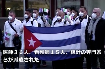 JUGEMテーマ:国際社会 (略)イタリア。中でも拡大が急速なロンバルディア州に22日、国民1人当たりの医師数が世界で最も多い国・キューバから医師団が派遣された。キューバの国旗を掲げ、医療用マスクを着けた(略)医師36人、看護師15人、統計の専門家らが派遣された。(略)共産主義体制下のキューバ(略)ハイチのコレラや西アフリカのエボラ出血熱など、人類の危機で最前線に立ってきた医師たちだ。(略)。医師団のリーダー、カルロス・ペレス・ディアス氏はイタリアの人々を支援する準備はできていると述べた。「キュー...
