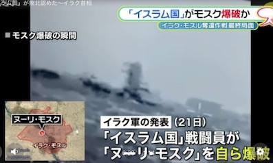 JUGEMテーマ:国際社会 イラク軍は21日、過激派組織「イスラム国」(IS)の最大拠点だったイラク北部モスルの旧市街で同日、IS支配の象徴だったヌーリ・モスクがISに爆破されたと発表した。同モスクでは2014年、ISの最高指導者アブバクル・バグダディ容疑者が説教。ISが自ら爆破したのは、旧市街に追い詰められ、イラク軍に占領される状況を避けるためとみられる。IS系メディアのアマク通信は、米軍の空爆で破壊されたと速報。だが米軍主導の有志連合は、モスク周辺で空爆はしていないと発表した。ISは、1...