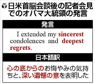 JUGEMテーマ:国際社会 オバマ米大統領「深い遺憾」、最上級の誠意 読売新聞:2016年05月26日 22時07分 http://www.yomiuri.co.jp/world/20160526-OYT1T50218.html?from=ytop_top オバマ米大統領が25日夜、米軍属の男が沖縄県うるま市の女性の遺体を遺棄した疑いで逮捕された事件を受けて表明した 「心の底からのお悔やみの気持ちと、深い遺憾の意」について、国際会議の経験が豊富な川村学園女子大の石川薫・特任教授(国際政治)は、 「一国の元首の発言としては最上級の遺憾の意を表したものだ」と分析した。 オバマ氏...
