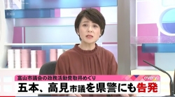 JUGEMテーマ:地方議会 1.KNB:「KNB」→「KNBニュース>県内」 ・2019.11.28 18:25:五本、高見市議を県警にも告発 >> 3.NHK:「NHKオンライン」→「全国のNHK」→「ニュース」→「地域」→「富山」を選択 ・11月28日 13時06分:政務活動費で団体などが刑事告発 >> 6.チューリップ:「チューリップテレビ」→「ニュース」→「11月28日(木)」 ・市民団体代表ら県警本部へ ?見・五本市議を刑事告発 >> 8.BBT:「BBT」→「ニュース」→「11/28(木)」 ・富山市議会政務活動費不正 ...