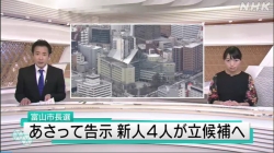JUGEMテーマ:首長・地方議会議員選挙! 「KNB」→「KNBニュース>県内」→「2021.04.12 18:56」 →「富山市長選挙 各候補が目指す市のカタチ」 2021.04.12(月)の他のニュース >>