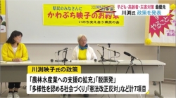 JUGEMテーマ:首長・地方議会議員選挙! 「KNB」→「KNBニュース>県内」→「2020.10.01 19:01」 →「知事選 新人・川渕映子さん政策を発表」 2020.10.01(木)の他のニュース >>