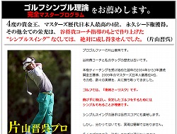 遠回りの練習を一切しないで、最短距離で、シンプルに、スイングを 構築する方法とネットで話題になっているのが、 谷将貴さんの「谷将貴のゴルフシンプル理論完全マスタープログラム」 2ch(2ちゃんねる)でも評価が高くて、 クレームや悪評は見当たらないね。 本当に効果があるのなら、 やってみようかな。 ⇒効果あり? 実践者の気になる感想 片山晋吾がその究極のスイング、シンプル理論を 手に入れる事が出来たのは谷将貴コーチの指導のお蔭ですって。 片山晋吾って、あのプロゴルファーの片山晋吾だ...