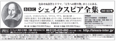 ひな祭りから少しずれましが、3月4日の朝日と日経朝刊に「BBCシェイクスピア全集」の広告が掲載されます。 藤沢に移って初広告です!