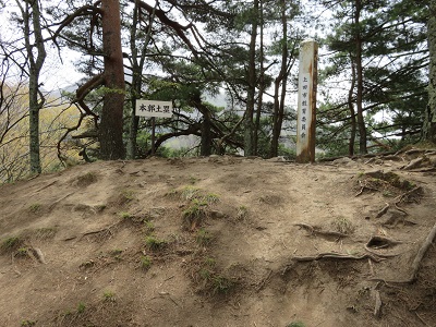 JUGEMテーマ:大河ドラマ 本城跡を進んで行きます。 案内板が見えてきました。 高さ2mの土塁に突き当たります。 桜の下にベンチがあります。 ここから急な山道になります。 土塁の横を通って本郭へ。 左側が怖い(*_*; 木の根に足をかけながら登ります。(^_^;)