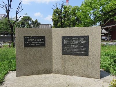 JUGEMテーマ:大河ドラマ 増上寺に向かう途中、信号待ちしている間にふと芝公園の一角に目が留まりました。 万延元年 遣米使節記念碑 1960年6月、遣米使節渡航100周年の記念に日米修好通商百年記念行事運営会によって建てられた記念碑です。 西暦1860年2月9日(万延元年正月18日)新見豊前守正興一行は日米修好通商条約批准書交換の使命をおびて江戸竹芝より米艦ポーハタンに搭乗、初の使節として米国に赴いた。副使村垣淡路守範正の詠にいう、 竹芝の 浦波遠く こぎ出でて 世に珍しき 舟出...