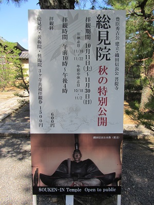 JUGEMテーマ:大河ドラマ 本能寺の変の100日後、10月10日に大徳寺において織田信長の大葬礼が執り行われました。 そして、信長の一周忌に間に合うように秀吉が建立した寺院が総見院です。 開祖は大徳寺117世の古渓宗陳。創建当時は、広大な境内に豪壮な堂塔が立ち並んでいたといいます。 明治の廃仏毀釈により、堂塔伽藍や多くの宝物が灰燼と化してしまいましたが、大正年間に再興。1961年(昭和36年)に本山に安置されていた信長木像を再び迎え、380年忌を行いました。 創建当時から残る正門、土塀、鐘、鐘楼に...