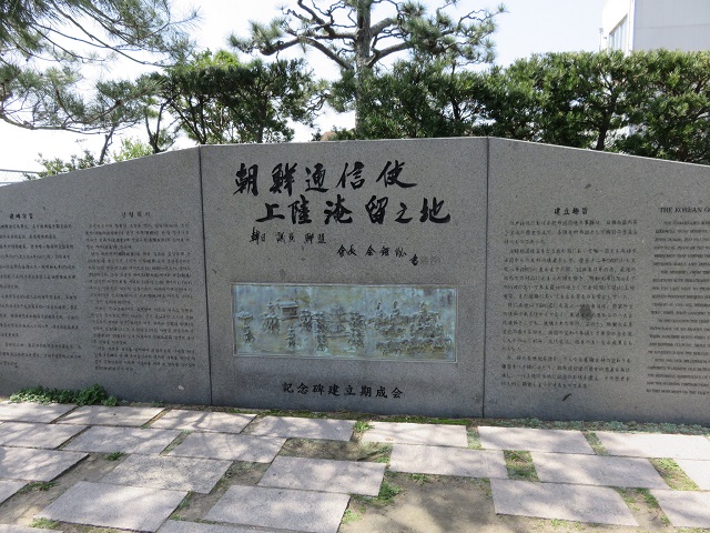 JUGEMテーマ:大河ドラマ 下関・赤間関は朝鮮通信使の本土最初の寄港地です。 江戸時代の通信使は対馬・壱岐(長崎県)、相島(福岡県)に立ち寄り、阿弥陀寺(現在の赤間神宮)前の桟橋に接岸し、上陸しました。 2001年8月、通信使の歴史と功績を後世に伝えようと、赤間神宮前の阿弥陀寺公園内に朝鮮通信使上陸淹留之地の碑が建立されました。 朝鮮通信使上陸淹留之地 建立趣旨 江戸時代における朝鮮通信使の事跡は、日韓両国の長き交流の歴史の中で、善隣友好の証として格別の意義を持つものであった。 ...