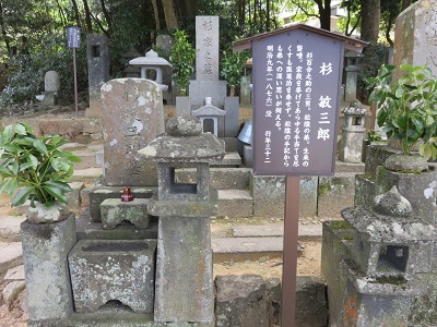 JUGEMテーマ:大河ドラマ 前回の放送で、トシこと敏三郎が亡くなってしまったので、今日は萩にある杉敏三郎の墓を紹介します。 弘化2年(1845)10月6日、杉家の三男として誕生。 吉田松陰や美和の弟に当たります。 生まれつきの聾唖でしたが、読書好きで写字模書が得意だったそうです。 兄の松陰は、九州遊学の際、熊本の本妙寺を深夜に訪れ、加藤清正を祀る難病・奇病にご利益のあるという浄地廟に二度お参りし、敏三郎が話せるよう祈願したといいます。 家族の中で、顔が松陰に一番似ていたそうで、松陰にとって可愛...