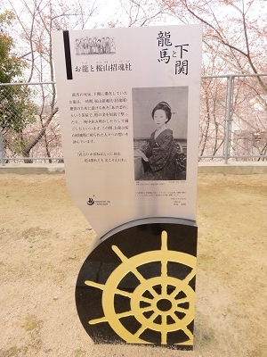 JUGEMテーマ:大河ドラマ 桜山神社は、あの「お龍さん」とも縁があります。 龍馬の死後、下関に滞在していたおり、お龍は一時期、櫻山招魂社の運営のために設けられた 「あけぼの」という茶屋で、橙の実を短銃で撃ったり、一晩中飲み明かしたりして過ごしていたといいます。 この間、お龍は櫻山招魂場に祀られた人々への想いを、詠んでいます。 「武士の かばねはここに櫻山 花は散れども 名こそ止むれ」