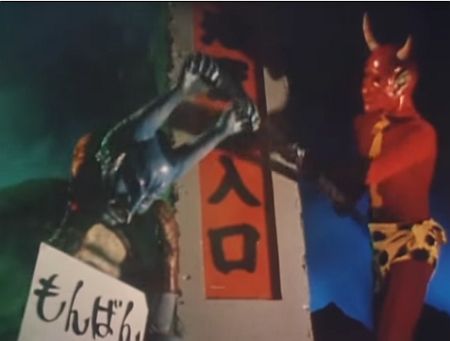 時代劇専門チャンネルで放送中の『変身忍者嵐』(1972〜73)、再見したかった35話・西洋妖怪グレムリンの回を観た。 壺から現れ、怪しげな角笛を吹き、再生西洋妖怪を仕切る。 日劇ミュージックホール出身の小人コメディアン、空飛小助が口だけ露出したマスクを被り演じているが、声は辻村真人の吹き替え。 記憶に残っていたのは、嵐に斬られたグレムリンが、唐竹割りよろしく真っ二つになり切断面が見えるカット。 怪人の最後は爆発や溶解が多かったから、今観てもハッとさせるものがある。 おそらく、本放送時の裏番組『ウル...