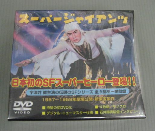 JUGEMテーマ:特撮 日本初の特撮ヒーロー映画『スーパージャイアンツ』のDVD-BOXが入荷。 『スーパージャイアンツ』はエメラルド遊星から来た宇宙人「スーパージャイアンツ」が悪と戦うヒーローシリーズ。 主演は、ザ・ガードマンや渡鬼の宇津井健さんです。 その全身タイツ姿が関根勤によって「モッコリ」と紹介され一時話題になりました。 音吉プレミアムではネタもの(もとい)レアもののDVD・Blu-ray...
