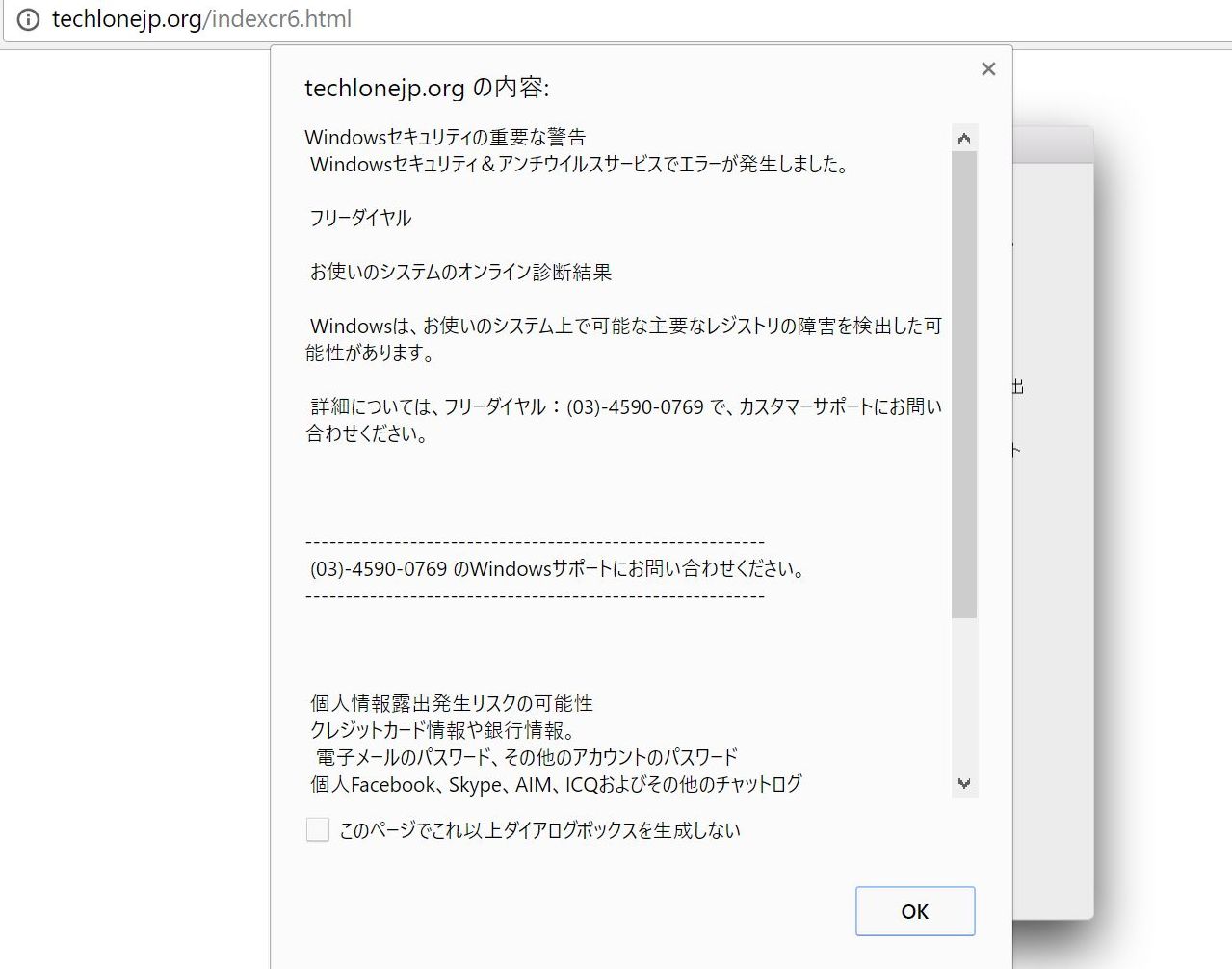 JUGEMテーマ:セキュリティ 全く、最近はおちおちエロサイトも見られない。 エロ見てたら、ビコビコビコ!って警告音高らかに、こんなのが出てきた。 まかり間違ってもOKなんて押しちゃだめ。 もちろん、☓印で消しても何回も出てくる。 ってのか、この電話番号、何なんだよ。まさか「このウイルス作った奴が嫌いな人の電話番号」じゃないだろうな。