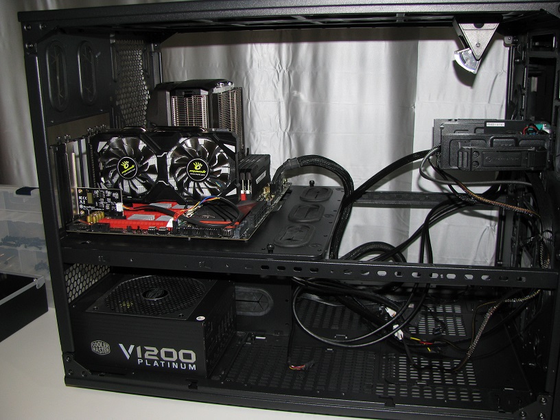 JUGEMテーマ:パソコン周辺機器 ただいま、4.6Ghzで常用テスト中の和尚です。 4.5GhzでPrime95を半日回して最高60度(室温23度)くらいで収まっていたので 調子に乗ってまだOCを目論んでおります。 今、使っているCPUクーラーはクーラーマスターのMasterAir Maker 8 某サファイアのグラボにも使われている、ベイパーチャンバーが効いているのでしょうか。 優秀すぎです。水冷にしなくてもいいねー。と思いました。 クーラーファンは出口側に1か所のみ。回転数はPWMにして1100〜1450rpmの...