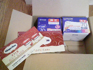 『エプソンダイレクト楽天市場店』では取り扱ってないのですが、 『エプソンダイレクト』で ハーゲンダッツアイスクリームミニカップギフト券付き【エプソン 純正インク】を購入 増税前のお買いものです JUGEMテーマ:パソコン周辺機器
