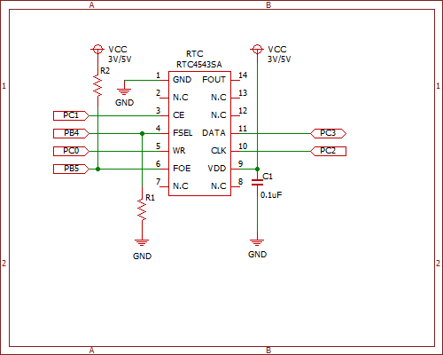 JUGEMテーマ:組み込みソフトウェア ハードの回路勉強素材として、RTC(リアルタイムクロック)基板を作ってみようかと思い、さっそく秋月電商のサイトを拝見。RTC-ICは機能が何種類かある事とDIPにするかSOPにするかで悩んだ。目が厳しくなってきたにも関わらずSOPのRTC-4543SAを選択 (機能で選ばず配線が楽そうなので(笑)) ICが選定できたので、次は回路図を起します。 RTC-ICは、CMOS出力機能付きなのでDATA pin(入出力ポート)は、直接CPU側のGPIO pinに接続してOKです。 また、FOE pinやFSEL pinも直接CPU側のGPIO pinに...