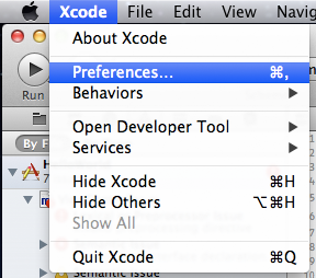 JUGEMテーマ:iPhoneアプリ開発 iPhoneアプリを開発しようと買った本を開いて、実際にMacで開発アプリのXcodeを操作しながら読み進めていました。 本の説明の文中に「プログラムのx行目の…」という表記があったので、Xcodeのエディタを見てみましたが行番号が表示されていない事に気づきました。 ネットで調べてみたところ、下記の手順で表示できる事が分かったので、備忘も兼ねて投稿して置きます。■ Xcodeのエディタに行番号を表示する手順手順1.Xcode画面のメニューから「Preferences…」を選択します。手順2.ポップア...
