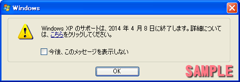 JUGEMテーマ:Windows こんにちは^^マイクロソフトは明日 2014/04/09 をもって Windows XP のサポートを終了します。予定では明日最後の更新プログラムが配布されるようです。2014/04/09 以降はセキュリティー更新プログラムが提供されなくなりますので、XP を使い続ける場合、ネットには接続しないようにするか、早急にWin7 や Win8(Win8.1)に移行することをおすすめします。このまま XP を使い続けると、ウイルスに感染する確率が 3分の2 増加するといわれています。「セキュリティソフトがあるから大丈夫」と思っていると...