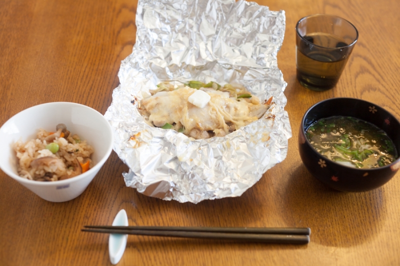 ティーマで鱈のホイル焼定食鱈の切り身が安かったので、ちょっと衝動買いをしてしまったためどう調理しようか迷っていたところテレビで、ちょうど作っているところが・・・・なので久しぶりに作ってみました。その中で、コツの一つに野菜はあらかじめ焼いておくこととありました。理由は、魚は火が通りやすいけど、野菜にはあまり火が通らないから見たいです。あとこのホイル焼き、いつも食べたあとお野菜と魚からでた汁が残りますよね。自分はこの残り汁がけっこう好きなので、子供の頃最後にごはんにかけて食べたりしていました。JUG...