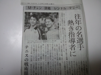 JUGEMテーマ:テニス 今日、錦織選手がブログを更新していましたが、 マイケル・チャン氏にコーチを依頼した経緯と、 この2週間一緒にやって得たものが非常に大きかった喜びを 率直な言葉で語っていますね。 今までにないものをたくさん教えてもらいました。 僕の中ではびっくりするほどの収穫量でした。 (中略)世界トップ3のコーチにははいると思います。 来年がますます楽しみになってきました! 錦織選手のブログ そんな錦織選手のインタビュー記事が朝日新聞のサイトに掲載されています。 表...