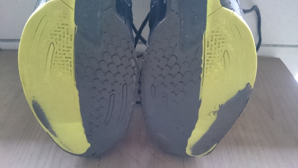 たいだい週1回使用して、約3年 こんなにすり減りました つま先部分は、穴が開き、もう限界と判断 ありがとう! JUGEMテーマ:テニスやってる人の日記