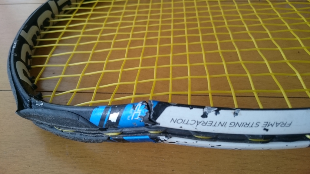 息子が泣きそうな顔で近づいて来た なんと! ラケットを折られたようだ! 部活中、近く市営コートの脇にラケットを置いて、 みんなでランニングで向かった 帰ってきたら、折れていた とのこと どんな置き方をしたのか分からないが、 ラケットケースにも入れず、無造作に置いていたようだ 自業自得 怒りたいけど、ブツブツ言っても仕方ない 新品を買うのももったい...