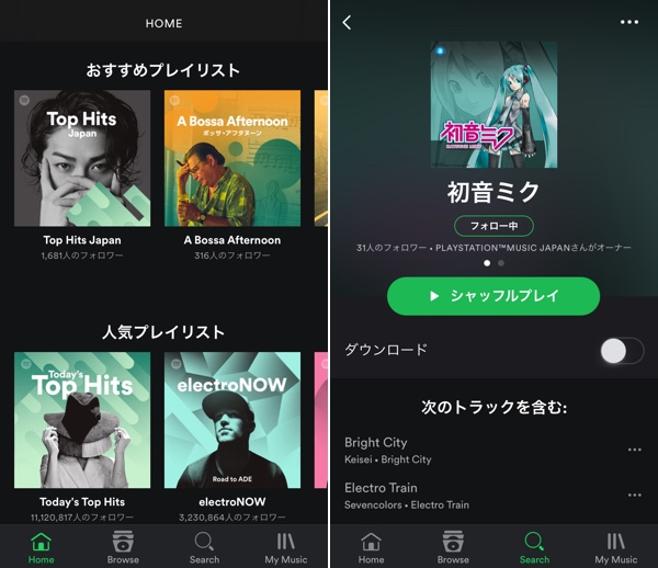 日本でもようやくサービスが開始された音楽配信サービス「Spotify」の招待コードが届いたので試してみました。まずはApp Storeから公式アプリをダウンロード(無料)してiPhoneで聴いてみます。 とりあえずいろんなプレイリストがあるので検索してみます。んで、ミクさんのプレイリスト発見!ちなみにこのプレイリストを作ったのはPlayStation Music Japanだそうです(笑)そーいえばSpotifyはPS4にも対応してますね。iPhoneアプリからは無料プランだとシャッフル再生しかできないみたいです。 ...
