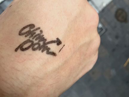 JUGEMテーマ:iphone 昨日行ってきたChim↑pom「また明日も観てくれるかな?」展にて チケット代わりに捺されたChim↑Pom Stamp 気に入っているので無理に洗って消さずそのまま会社へ そして日々の生活の中でどのような感じで消滅していくかを見ていこうかな と何の誰の役にも立たないことを急に自分の中だけで始める Photo by iphone now listening music : PLASTIKMAN
