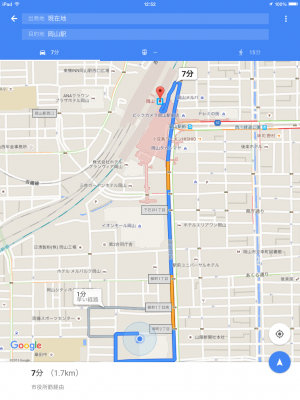 JUGEMテーマ:iPad こんにちは。 ハロー!パソコン教室イトーヨーカドー岡山校 インストラクターの渡邊です 目的の場所があるのに場所が分からない・・・ そんなことありませんか? 今日ご紹介するのは「Google Maps」。 場所の検索ができるのはもちろんですが、出発地・目的地を 入力してそこまでの道案内もマップ上で確認できるんです。 到着時間の目安も表示されていてとても便利なアプリですよ♪ ハロー!パソコン教室イトーヨーカドー岡山校から岡山駅まで 検索してみました。 こんな地図が表示されました。...